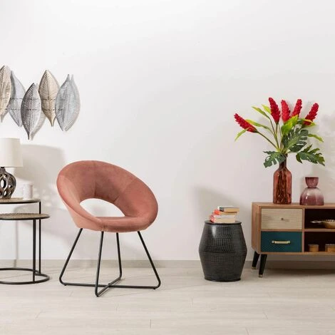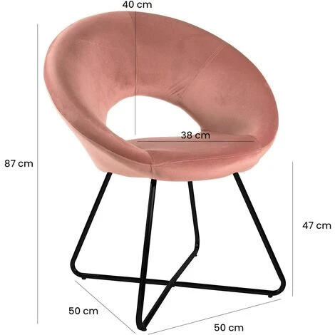 Baroni Home Poltrona Imbottita Circolare In Velluto Con Gambe In Ferro Dorato. Poltrona Da Ufficio O Da Pranzo Super Confortevole E Seduta Ergonomica 71x59x84 Cm – Rosa Cipria, Gambe Nere