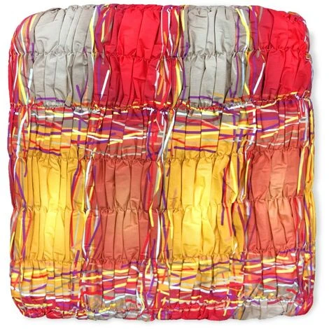 NUOVO copridivano BRISTOL angolare universale estensibile da cm. 350 a cm. 650, realizzato in una fantasia moderna a quadri sui toni dell’arancio, giallo, beige.