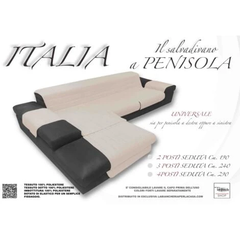 Nuovo salvadivano ‘ITALIA’ con penisola, ideale per rivestire il tuo divano angolare con penisola ed evitare tutti i problemi in fatto di vestibilità