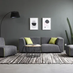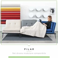 Divano 3 Posti Modulare Componibile In Tessuto Stile Moderno Con Pouf Jantra Colore: Grigio Scuro