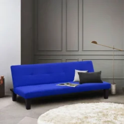 Divano Letto 2 Posti Microfibra Con Piedini Onice Per Casa E Sale D’attesa Pronto Letto Colore: Blu
