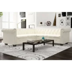 Divano Chersterfield Ad Angolo 5 Posti – Divano Relax Sofa In Similpelle Marrone BV661151 – BonneVie