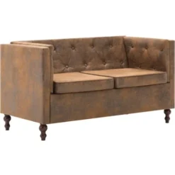 Divano Chesterfield A 2 Posti – Divano Relax Sofa In Tessuro Scamosciato Marrone BV809359 – BonneVie