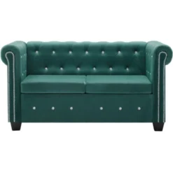 Divano Chesterfield A 2 Posti – Divano Relax Sofa In Velluto 146x75x72 Cm Verde BV790906 – BonneVie