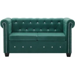 Divano Chesterfield A 2 Posti Divano Fisso Sofa Da Soggiorno In Velluto 146x75x72 Cm Verde ITD32086