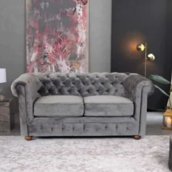 Divano Chesterfield A 2 Posti Divano Fisso Sofa Da Soggiorno Rivestito In Tessuto Grigio ITD68629