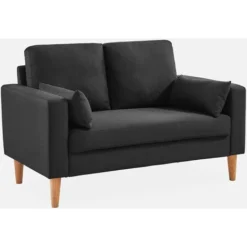 Divano In Tessuto Grigio Scuro – Bjorn – Divano A 2 Posti Con Gambe In Legno, Stile Scandinavo