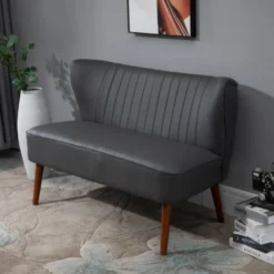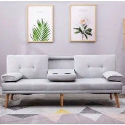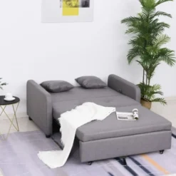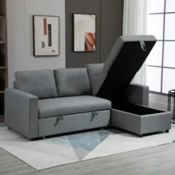 Homcom Divano Letto Chaise Longue In Rovere Nero E Tessuto Di Lino Grigio Antracite L164D66H81cm