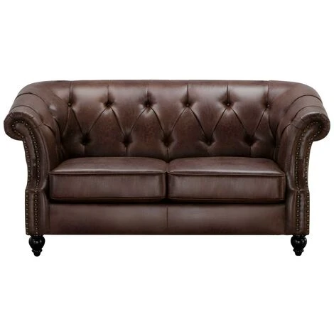 Divano Chesterfield in microfibra con effetto cuoio invecchiato AQUITAINE