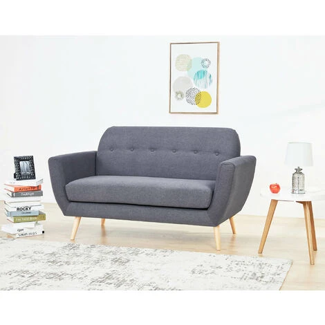 Divano 2 Posti Grigio Stile Moderno Di Design Contemporaneo Con Bottoni Per Salotto Casa Hotel, Stile Moderno, Cm 147x79x86 H