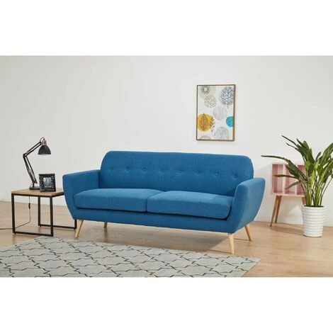 Divano 3 Posti Blu Melange Stile Moderno Di Design Contemporaneo Con Bottoni Per Salotto Casa Hotel, Stile Moderno, , 193x79x86 H