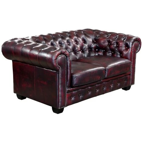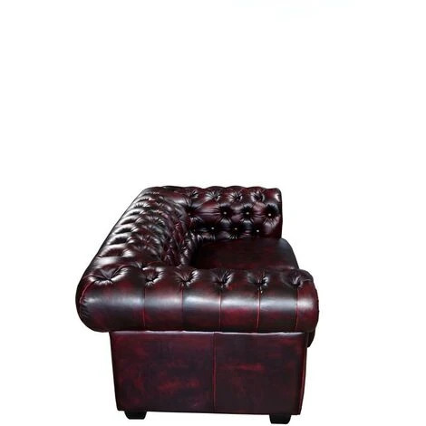 Divano e poltrona chesterfield in pelle antico BRENTON. Colore: Marrone, Rosso ciliegia o verde scuro.