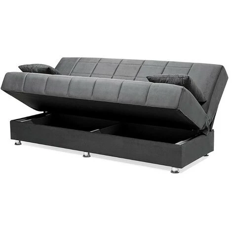 Divano con funzione letto e contenitore Braga nero 191x55x90h