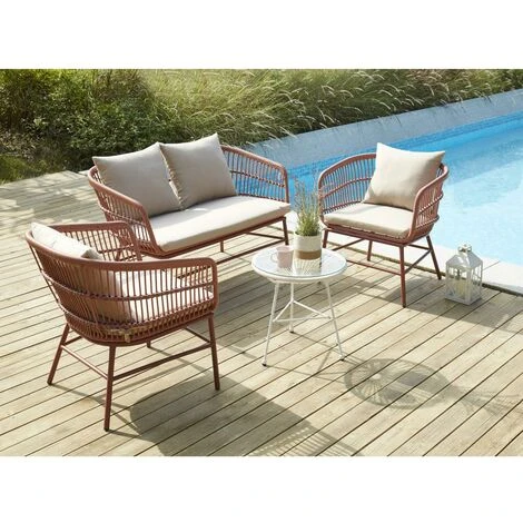 Trasforma il tuo spazio esterno aperto in un angolo di paradiso con il salotto da giardino 4 posti LOUSINI, che offre comfort e stile per i momenti di relax con la famiglia e gli amici.