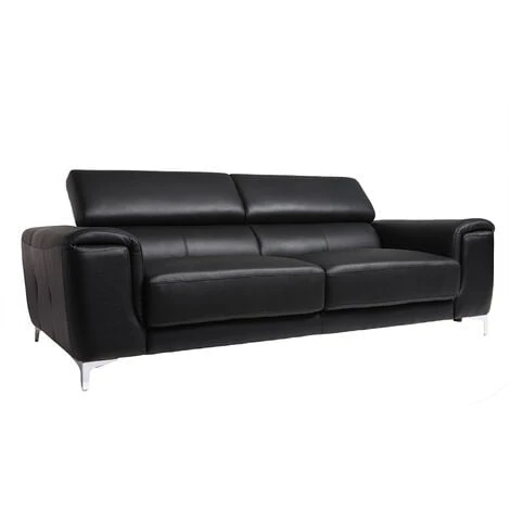 Questo divano associa il comfort e la robustezza della sua pelle al design dei suoi piedi cromati.