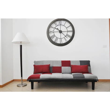 Divano letto in tessuto modello Russell by Samira donerà un tocco di vivacità al tuo ambiente grazie al gioco di colori che lo caratterizzano. Divano letto clic clac versatile e funzionale, con un semplice movimento dello schienale si trasformerà in un pratico letto di emergenza. Divano pronto letto dallo stile moderno si adatterà perfettamente ai tuoi ambienti dal soggiorno alla cameretta dei bambini o dalle sale di attesa della tua attività al tuo ufficio. Il divano è corredato di due cuscini imbottiti, pronto all’uso basterà solo avvitare i piedini che troverete nella cerniera posta sotto la seduta.