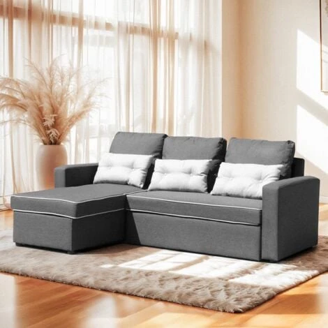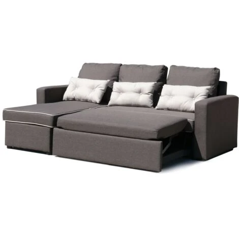 Il divano letto angolare Smeraldo è uno tra i modelli 2in1 più confortevoli prodotti dal marchio Modus Sofa, concepito nel segno dell’eleganza e della funzionalità e ideale per i momenti relax di tutti i giorni, anche se hai spesso ospiti a casa. Confortevole divano per le tante attività quotidiane, grazie al pratico meccanismo a scatto il divano angolare Smeraldo si trasforma in un istante in un morbido letto per la notte, perfetto per abbandonarsi a un sonno ristoratore o per accogliere gli ospiti in visita solo per un week end o per periodi più lunghi. Servendosi delle pratiche maniglie in stoffa, con un semplice movimento il materasso integrato sotto la seduta scorre facilmente in avanti per allinearsi alla penisola per formare un letto matrimoniale e dormire con la stessa qualità e comodità di un letto vero e proprio. La chaise longue imbottita ti permette di distendere le gambe per gli oziosi pomeriggio di relax e potrai anche decidere se posizionarla a destra o sinistra del divano così da creare un angolo salotto accogliente e perfettamente a misura dei tuoi spazi, e se il tuo soggiorno è anche la tua camera da letto, il pratico vano contenitore ti aiuterà a tenere in ordine lenzuola, coperte, biancheria da letto e i 3 morbidi cuscini aggiuntivi. Il divano è realizzato con un telaio in legno di alta qualità, robusto e resistente che sostiene saldamente la struttura a tre posti ed è rivestito in tessuto microfibra piacevole al tatto, fresco d’estate e avvolgente d’inverno, ideale insomma per tutti i momenti della giornata e in tutte le stagioni, e si sposa bene con tutte le combinazioni di colori disponibili.