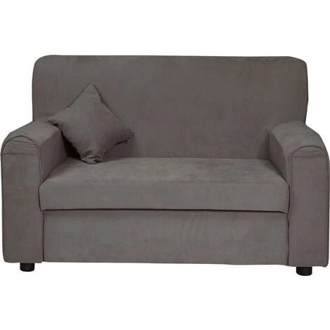 CARATTERISTICHE TECNICHE: Materiali – La struttura del prodotto in legno garantisce stabilità, resistenza e durevolezza nel tempo – Il rivestimento è di morbido tessuto in poliestere imbottito – Misure divano: 125 x 73 x 85h cm – Cuscino 90 x 55h11, seduta h40