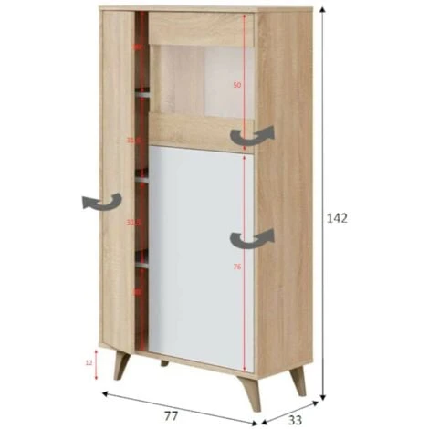 DIMENSIONI IN CM – Vetrina: Lunghezza: 77 Larghezza: 33 Altezza: 142