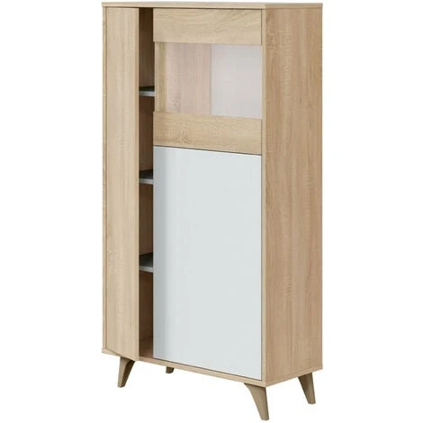 STRUTTURA E UTILIZZO – Credenza alta da soggiorno strutturata con tre ante battenti non reversibili di cui una con dettaglio in vetro, internamente quattro ripiani fissi – Le ante sono prive di maniglie per migliorarne il design – Questo articolo d’arredamento è perfetto per arredare sala da pranzo, salotto, corridoio, ingresso, corridoio, o ufficio contenendo in modo ordinato stoviglie, bicchieri, tovaglie, posate, libri, documenti o oggetti decorativi.