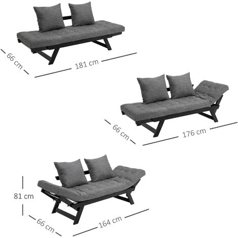 - • Dimensioni del Divano: 163.83 L x 66.04 P x 81.28 A cm● Dimensioni del Letto: 180.97 L x 66.04 P x 81.28 A cm
