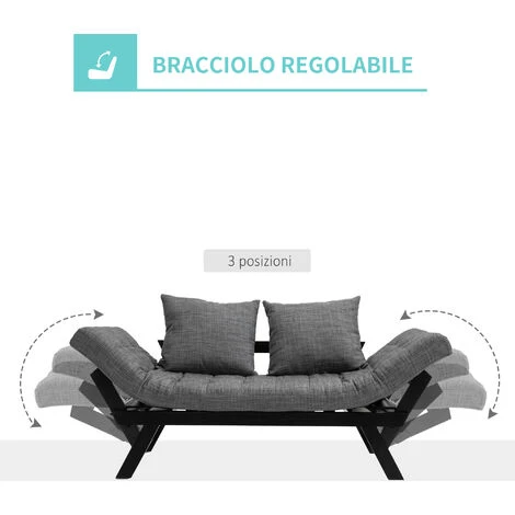 - • Convertibile in chaise longue o in letto singolo grazie ai braccioli regolabili