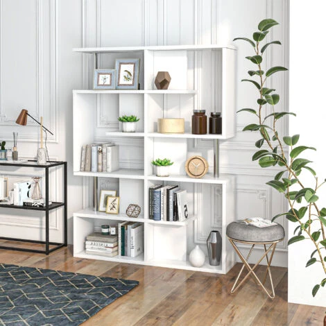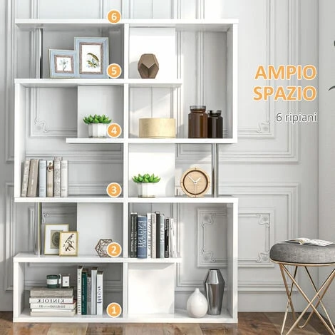 Questa moderna libreria a S è un complemento perfetto per ogni casa. Realizzata in truciolato E1 da 25 mm per un uso prolungato. Dotata di due cinghie anti-ribaltamento nella parte posteriore. I ripiani a 5 livelli facilitano lo stoccaggio di libri, ornamenti, CD e molti altri articoli. Può essere collocata in soggiorno, studio, ufficio, corridoio, ecc.