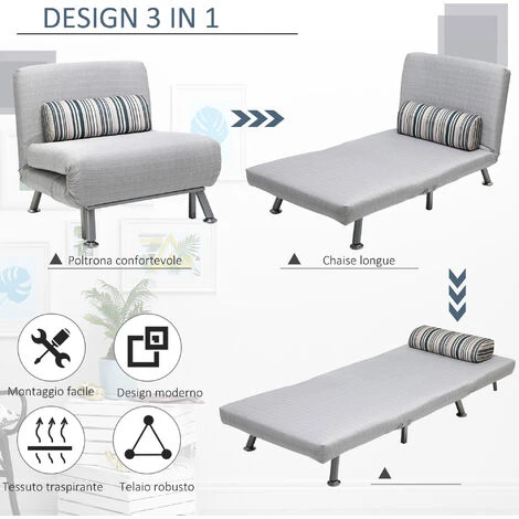 Questa poltrona letto realizzata con materiali di qualità e dal design moderno, è un complemento d’arredo indispensabile per la tua casa. Oltre ad essere molto comoda è anche multifunzionale e pratica, trasformandosi facilmente da poltrona in letto in pochi secondi.
