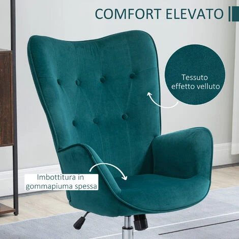 Lasciati avvolgere dalla comodità della nostra poltrona da ufficio HOMCOM. Ha un design elegante con rivestimento effetto velluto trapuntato a bottoni dal colore accattivante. La base a 5 bracci assicura stabilità e sicurezza di utilizzo, mentre l’altezza regolabile ti permette di regolarla al livello più adatto alle tue esigenze. Perfetta per ogni spazio, per lavorare o per un momento di pausa, la nostra poltroncina non può mancare nella tua casa!