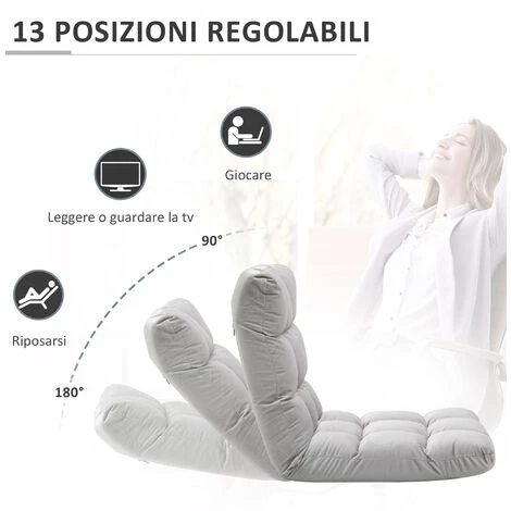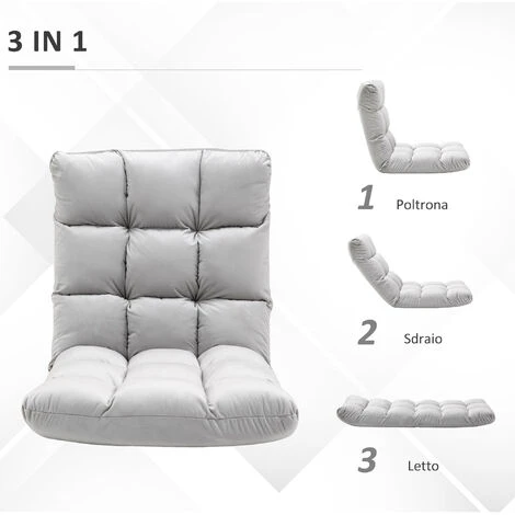 Questa originale poltrona letto da terra HOMCOM ha una spessa imbottitura e un morbido rivestimento in flanella che la rendono estremamente confortevole. Lo schienale è reclinabile fino a 180°, così potrai scegliere il livello di comfort che preferisci. Il suo design semplice e con finitura dal colore neutro rende la poltrona perfetta per ogni spazio.