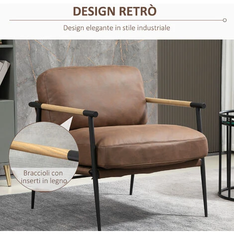 Portare originalità e stile non è mai stato così facile con la poltroncina da camera HOMCOM! I dettagli in stile industriale di questa poltrona di design la rendono perfetta per farsi notare in ogni ambiente. È dotata di una spessa imbottitura e rivestimento in similpelle morbida, che assicurano un elevato comfort per rilassarsi in ogni momento della giornata.