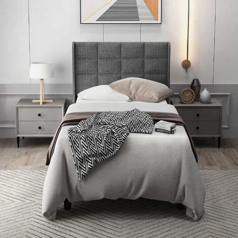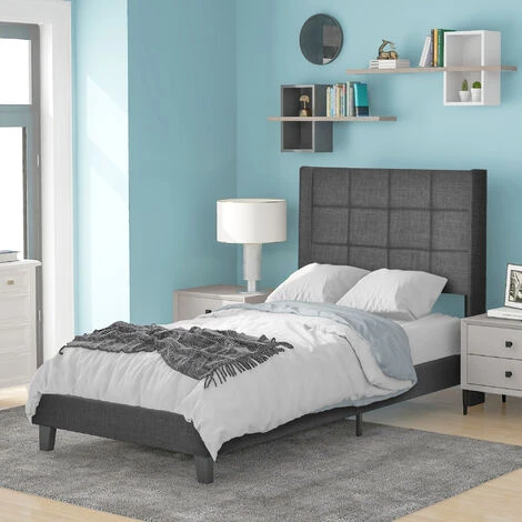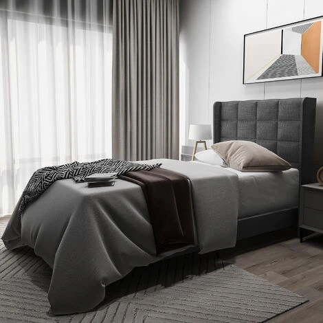 【Design】 Il design classico ed elegante è adatto a una varietà di immagini di stanze per dare un aspetto alla tua casa. Letto imbottito di design / letto in tessuto nei colori grigio e blu con piedini neri e testiera alta, schienale appoggiato in linee eleganti, comprensivo di rete a doghe. Appoggiati alla morbida testiera del letto per rilassarti e leggere il tuo libro preferito. Così puoi rilassarti dopo una dura giornata e vivere un sonno riposante.