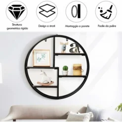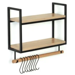 Mensola Da Parete Legno E Metallo Design Moderno Con Asta E Ganci Bagno Cucina