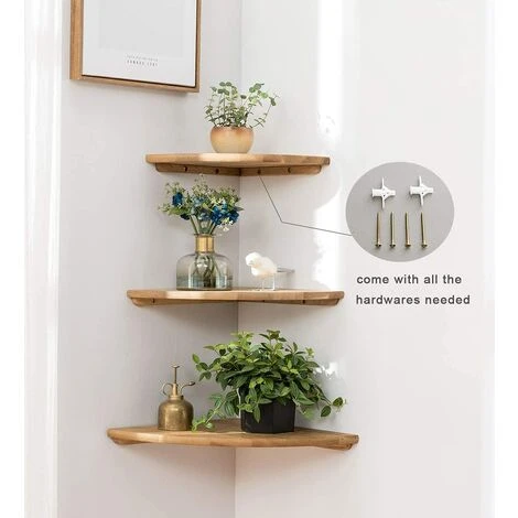 Materiale robusto in legno di quercia: realizzato in legno di quercia solido ed ecologico e viene fornito con tutto l’hardware necessario. Impermeabile e può essere montato in bagno Comodo ripiano angolare: ampio e robusto abbastanza da contenere oggetti da collezione, foto, libri, giocattoli, opere d’arte, trofei, altoparlanti, piccole piante e altro ancora. Comoda mensola a muro per risparmiare spazio e aggiungere ulteriore spazio per riporre e riorganizzare piccoli oggetti in bagno, camera da letto, soggiorno, cucina e altro ancora. Un ottimo modo per liberare spazio.Facile da montare e montare: molto pratico e di piccole dimensioni, si attacca facilmente a molte superfici con un martello, senza lasciare segni e senza danneggiare il muro o il foro, e non cadrà facilmente dopo l’installazione. Adatto per superfici a 90 gradi: pareti in cemento, adesivi murali, pareti in calce, pareti imbiancate e porte in legno. Adatto per legno duro e pareti solide. Non adatto per pareti in gesso.