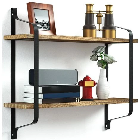 1 x Mensola Parete 2 Mensole Ripiani Design Moderno Scaffale Libreria Legno Metallo