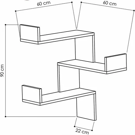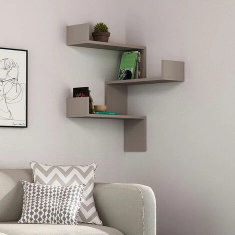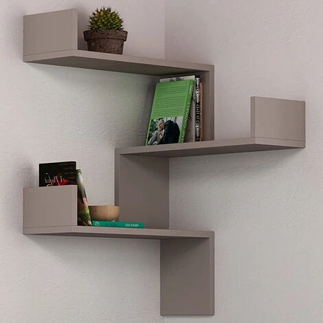 SPECIFICHE PRODOTTO:Marca: Shally DoganColore: Tortora Mensola angolare a pianiNumero di piani: 3Materiale: legno 18 mm prodotto + rivestimento melaminicoDimensioni: 60l x 22P x 90H cmSemplice da pulire Peso supportato: 7 kgFacile da montare Mensola dal design unicoMateriali top rispettosi dell’ambiente