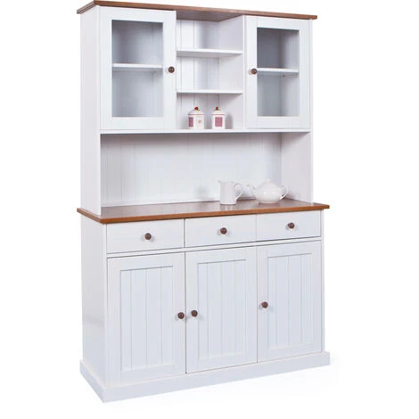 CREDENZA 3+2ANTE + 3CASSETTI, DIM, 131x45x181H , PINO MASSELLO VERNICIATO AD ACQUA BIANCO + TOP E FINITURE MARRONE, ARTICOLO IN KIT,COORDINABILE CON GLI ALTRI ARREDI DELLA LINEA WESTERLAND,