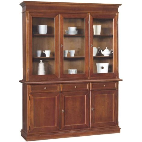 MOBILI 2G – CRISTALLIERA 3 PORTE IN LEGNO NOCE ARTE POVERA 155x42x210