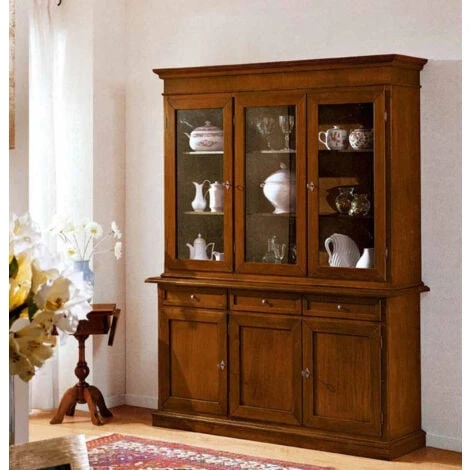 Cristalliera in arte povera colore noce elegante e con proporzioni perfette per qualsiasi stanza, adatta per contenere al suo interno stoviglie : bicchieri , piatti , tazze e servizi da the o caffè risaltando tutto quanto esposto sui ripiani. Elemento d’ arredo adatto per salotti e nelle cucine, esteticamente appagante e allo stesso tempo funzionale e spazioso.