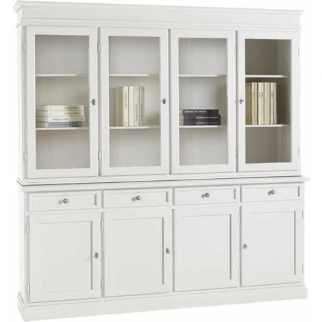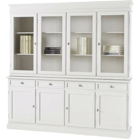MOBILI 2G – CRISTALLIERA CLASSICA IN LEGNO 4 PORTE BIANCO SPORCO 203x42x203