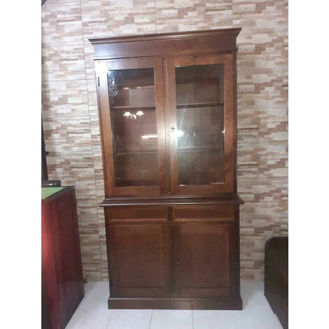 Credenza con vetrina in legno, stile arte povera, colore noce