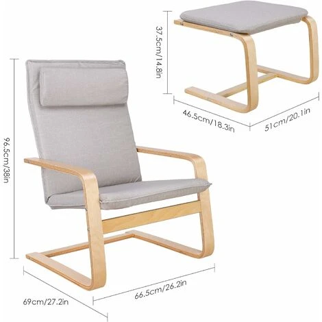 【Comoda e pratica】Dimensioni poltrona: 66,5x69x96,5 cm, dimensioni poggiapiedi: 51 x 47 x 38,5 cm, questa sedia in betulla è dotata di poggiapiedi e poggiatesta, comodo poggiatesta con spessa schiuma interna e cuscini spessi, Può fornire uno stato confortevole e rilassato. Il poggiapiedi può fornire una gamma completa di cure confortevoli e fornire un comodo supporto per i tuoi piedi.Per ragioni strutturali,non può essere utilizzato come sgabello per molto tempo.