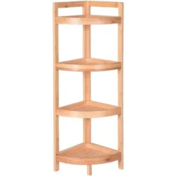 Angoliera In Bambù A 4 Ripiani Scaffale Libreria Angolo Salvaspazio 26x26x90cm