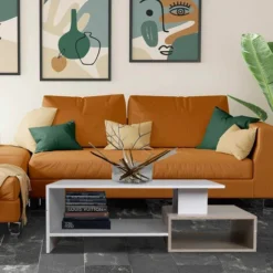 Tavolino Divano Salotto Rettangolare Design Moderno Legno 4 Ripiani Bianco Oak