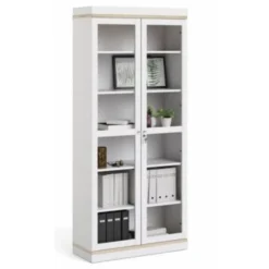Vetrina Soggiorno 203 Cm Bianco Opaco E Rovere Con Due Ante E Cinque Ripiani Rovere E Bianco
