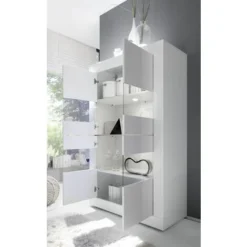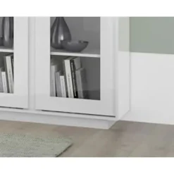Vetrina Soggiorno 199 Cm Bianco Opaco Con Due Ante E Tre Cassetti Bianco
