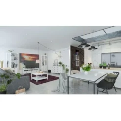 Vetrina Soggiorno 200 Cm Bianco Opaco E Rovere Con Due Ante E Cinque Ripiani Rovere E Bianco