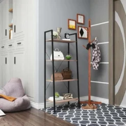 WOLTU Scaffale A Scala Libreria Portaoggetti In Legno Acciaio Con 4 Ripiani Nero+faggio