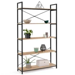 Scaffale Libreria Multiuso Acciaio Inox Con 4 Ripiani 90 X 45 X 180 Colore Nero