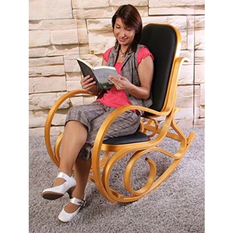 Sedia a dondolo modello M41 legno chiaro ecopelle colore NERO Le sedie a dondolo rappresentano la base perfetta per i vostri momenti rilassanti, sia davanti alla tv chea un buon libro oppure anche davanti al computer! Questo prodotto è un mix di tradizione e design che vi accompagnerà durante le ore del giorno, in qualsiasiambiente donando un tocco di classe alla vostra casa. design classico facile da montare struttura in legno carico massimo 120kg rivestimento seduta e schienale in ecopelle 100% poliuretano dimensioni (ca.): altezza: 90 cmlarghezza: 55 cmprofondità: 96 cmaltezza seduta: 41 cmlarghezza sedile: 44 cmprofondità sedile: 42 cmaltezza schienale (dalla seduta): 75 cmlarghezza schienale: 40 cm ordinabile anche in altri colori e versioni (vedi altre offerte, salvo disponibilità).